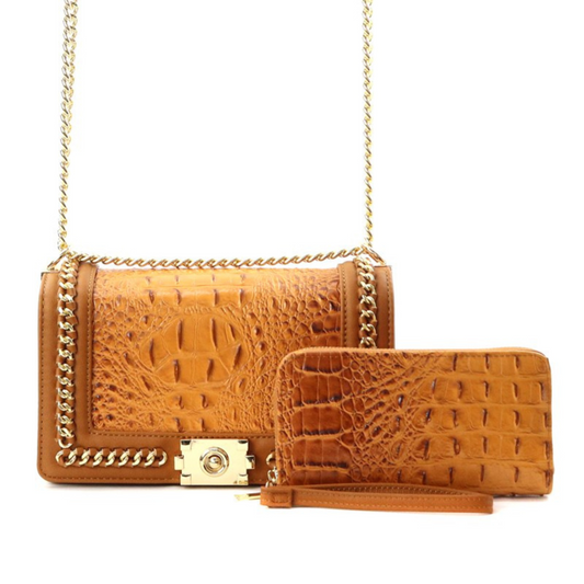 Ava – Croc-Embossed Leather Shoulder Bag & Wallet Set | Trendy Women’s Fashion Accessories